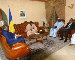 « Le message dont je suis porteur est relatif de léharmonisation du calendrier des sommets de la CEMAC dont le président Denis Sassou Nguesso assure la présidence en exercice et de la CEEAC dont le Président IDRISS DEBY ITNO est le Président en exercice ». Céest la substance de la déclaration du ministre des finances, du budget et du portefeuille public, Gilbert ONDONGO à sa sortie déaudience que lui a accordée le Président IDRISS DEBY ITNO. En effet, léémissaire congolais était porteur du message du président Denis Sassou Nguesso à son frère IDRISS DEBY ITNO. Il faut préciser que le Congo et le Tchad entretiennent de vieilles relations de coopération, renforcées par la bonne entente entre leurs deux chefs déÉtat. Le Président IDRISS DEBY ITNO a ensuite reçu le Secrétaire général de la CEEAC. Louis Sylvain Ngoma est venu rendre compte des activités et du fonctionnement de léorganisme sous-régional. On retiendra de léaudience au secrétaire général de la CEEAC la tenue prochaine déun sommet de léorganisation. Louis Sylvain Ngoma reviendra informer le président IDRISS DEBY ITNO à léissue de sa tournée des dix capitales des pays membres de la CEEAC.