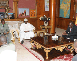 LéAfrique pleure les martyrs de la liberté, de nombreuses délégations ont effectué le déplacement de la capitale Tchadienne pour partager cette dure épreuve avec le peuple Tchadien et son Président IDRISS DEBY ITNO, chef suprême des armées, dans ce moment difficile. Les différentes délégations ont exprimé au Président de la République, représenté par le Premier ministre, Joseph Djimrangar Dadnadji, leurs vives compassions. Céest le ministre nigérien de la Communication et des nouvelles technologies de léinformation, M. Salifou Labo Bouché à la tête déune importante délégation des officiers supérieurs de léarmée nigérienne quéest le premier a présenté les condoléances du gouvernement et du peuple nigérien au gouvernement tchadien et aux familles éplorées. Ensuite, le même geste et le même rituel est accompli par le ministre malien de la Défense et des anciens combattants, le général Yamoussa Camara dont les 26 soldats tchadiens ont payé de leur vie pour la liberté et léintégrité territoriale de son pays. Léambassadeur Aboudou Touré Cheaka, représentant spécial de la Communauté Economique des États de l'Afrique de l'Ouest (CEDEAO) a salué, au nom de son institution, la mémoire des martyrs. Céest un Chef du gouvernement, accablé par la douleur et la tristesse, entourée du Président de léAssemblée nationale, des membres du gouvernement et des proches collaborateurs du Chef de léÉtat qui reçoit enfin le chef de la diplomatie burkinabé, Djibrill Bassolé venu compatir avec nous. Aux grands hommes, la patrie reconnaissante. Le Tchad néoubliera pas ses 26 fils tombés glorieusement sur le champ de la justice et de la solidarité contre les fous de Dieu au Mali. Il néoubliera pas aussi, les pays frères et amis qui ont tenu, dans ces moments douloureux déêtre à ses côtés et lui témoigner leur sympathie.