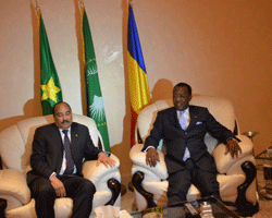 En partance pour le Koweit où il prendra part au sommet de la Ligue arabe, Mohamed Ould Abdel-Aziz a tenu à faire une escale technique de quelques minutes à NDjaména. Il a été accueilli par le Chef de lÉtat IDRISS DEBY ITNO en présence de quelques membres du gouvernement, de quelques uns de ses proches collaborateurs et du maire de la ville de NDjaména Ali Haroun. Les deux hommes dÉtat ont eu ensuite un entretien au salon dhonneur de laéroport international Hassan Djamouss de NDjaména. Nul doute que les questions liées au renforcement des liens de coopération entre les deux pays et dautres sujets dintérêts communs ont meublé ce tête-à-tête de prés de deux quarts dheure. Les relations de coopération entre le Tchad et la Mauritanie se résument en un mot : Excellentes. Elles sont même exemplaires et pluridimensionnelles. Et les deux Chefs dÉtat, IDRISS DEBY ITNO et Mohamed Ould Abdel-Aziz donnent chaque jour plus de relief à cette idylle qui renforce laxe NDjaména-Nouakchott. Le Président mauritanien, Mohamed Ould Abdel-Aziz et le Chef de lÉtat tchadien sont tellement sur la même longueur dondes, quils ne manquent jamais une occasion, pour rapprocher davantage leur point de vue et position en vue de raffermir, la coopération bilatérale entre leurs pays. Le Président mauritanien a été raccompagné sur le tarmac de laéroport, par son frère et ami, le Président IDRISS DEBY ITNO. Comme à larrivée, le départ a été constitué du même comité restreint daccueil.Lavion du Chef de lÉtat mauritanien a pris son envol à 11H 50 minutes. Destination : le Koweit.