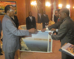 Les Lacs d’Ounianga sont brillamment inscrits par l’Unesco sur la liste des patrimoines de l’humanité le 12 juillet 2012. Une brillante inscription, puisqu’il s’agit des sites à valeur universelle exceptionnelle. Le document relatif à cette inscription a été officiellement remis ce jeudi au Chef de l’État par la délégation ayant défendu le dossier à Saint-Pétersbourg (Russie). Il convient de rappeler que le Président de la République avait mis à la disposition de l’équipe de chercheurs allemands et tchadiens d’importants moyens logistiques pour les nombreux déplacements sur les sites dans la région de l’Ennedi. Dans son mot de présentation, le ministre de la Culture, Khayar Oumar Défallah a, au nom de la délégation, félicité le Chef de l’État et l’a remercié pour son appui constant à l’équipe scientifique qui a travaillé pour cet aboutissement heureux. Dans sa réponse, le Chef de l’État a remercié toute l’équipe scientifique et tous ceux qui ont contribué à ce succès. « Il faut faire de telle sorte que ces lacs soient préservés puisqu’il s’agit d’une histoire de l’humanité toute entière », a conseillé le Président de la République. A l’issue de cette cérémonie, le Président de la République, IDRISS DEBY ITNO, Grand Maître de l’Ordre national du Tchad, a élevé les membres de l’équipe scientifique tchado/allemande et les personnalités ayant coordonné le dossier aux grades ci-après : -Ordre national du Tchad, grade de Commandeur : Mme Christiana Rau (Veuve de l’ancien Président de la République d’Allemagne) ; -Grade d’Officier : MM Hassan Tchonaye (Ambassadeur du Tchad en Allemagne); Khayar Oumar Defallah (Ministre de la Culture et Chef de délégation); Mahamat Saleh Adoum Djérou (Ambassadeur du Tchad auprès de l’UNESCO) ; -Grade de Chevalier : Dr Stephan Kropelin ; Dr Sven Oehm ; Père Ngakoutou Thimotée ; Dr Baba Mallaye (Directeur général du Centre National d’Appui à la Recherche); Mr Mahamoud Younouss (Directeur général de l’Office national du tourisme) et Mr Ahounta Djimdoumalbaye (Centre National d’Appui à la Recherche).