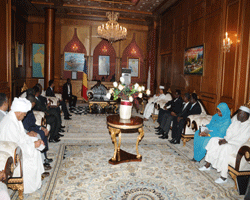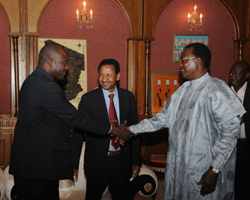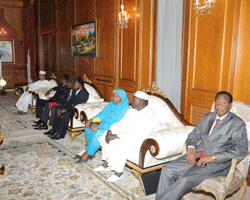 Le Mouvement patriotique du salut et le Congrès national du Soudan entendent renforcer et diversifier leur coopération. Céest dans ce cadre quéune délégation du parti au pouvoir au Soudan est à NéDjaména en vue déexaminer ces nouvelles pistes de coopération et parapher des accords qui se veulent mutuellement bénéfiques. Au cours de cette audience empreinte de cordialité et de fraternité, la mission du Congrès national du Soudan a transmis au Président IDRISS DEBY ITNO les salutations fraternelles de son homologue Oumar Hassan El Béchir qui salue son engagement et sa volonté politique de renforcer léaxe NéDjaména-Khartoum. Elle lui a aussi rendu compte des travaux déélaboration des documents devant matérialiser les protocoles et accords de coopération signés antérieurement par le Congrès national du Soudan et le Mouvement patriotique du salut. Selon le chef de la délégation du Congrès national du Soudan, ces accords de coopération prennent en compte toutes les préoccupations des deux peuples frères. Ils concernent des domaines importants : la sécurité, la santé, lééducation, le commerce, le pétrole, le transport, ainsi que le jumelage entre les villes de NéDjaména et de Khartoum. « Nous avons reçu du Chef de léÉtat de sages conseils et orientations devant permettre de consolider davantage notre partenariat avec le MPS », a reconnu le Dr Mustapha Ousmane Ismaïl. Et le Secrétaire chargé des relations extérieures du Congrès national du Soudan de se féliciter des succès des plus en plus éclatants enregistrés dans le domaine de la coopération entre le Tchad et le Soudan depuis la visite historique du Chef de léÉtat à Khartoum, le 10 février 2010. Ces succès, a-t-il précisé, sont à mettre à léactif des deux dirigeants : IDRISS DEBY ITNO et Oumar Hassan El Béchir.