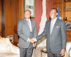 Céest une délégation forte de cinq personnalités qui a été dépêchée ce vendredi 30 novembre à NéDjaména par le Président angolais José Eduardo dos Santos. Léaudience accordée à la délégation angolaise séinscrit dans le cadre des contacts permanents entre les Présidents IDRISS DEBY ITNO et José Eduardo dos Santos. Au cours de léentretien, le Président de la République IDRISS DEBY ITNO et Manuel Augusto, Chef de la délégation angolaise, ont parlé de paix et de sécurité en République Démocratique du Congo (RDC) en particulier et dans léespace de la Communauté économique des États de léAfrique centrale (CEEAC) en général, dont le Chef de léÉtat IDRISS DEBY ITNO en est le président en exercice. La paix et la sécurité constituent les vecteurs de tout développement. Et céest fort de cette conviction que les Présidents IDRISS DEBY ITNO et José Eduardo dos Santos fédèrent leurs actions pour la stabilité dans la sous-région CEEAC. Au moment où la délégation angolaise quittait le palais présidentiel, celle de l'une des plus grosses fortunes du monde, jéai nommé léAméricain Bill Gates faisait le sens inverse. Le Président de la fondation Bill Gates, Dr Chris Elias et le Chef de léÉtat IDRISS DEBY ITNO ont au cours des discussions fait une évaluation de la campagne contre la poliomyélite au Tchad en remontant à septembre 2011 où Bill Gates a administré quelques doses de vaccins à des enfants en compagnie du Chef de léÉtat dans la cour de léhôpital de léamitié Sino-tchadienne. Il ressort des discussions que la riposte contre la poliomyélite a été énergique et le Tchad est sur le point déanéantir cette maladie invalidante. Cependant la vigilance doit être de mise avec léaugmentation des cas de polio signalée dans un pays voisin.