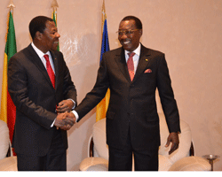 C’est une visite de courtoisie que le Président burundais Pierre Nkurunziza a tenu à rendre à son grand frère, le Président de la République IDRISS DEBY ITNO. Les deux hommes d’État s’apprécient mutuellement et ne manquent l’opportunité d’échanger leurs idées et converger sur un même objectif. Le ciel entre le Tchad et le Burundi est toujours dégagé. Les deux pays entretiennent de très bonnes relations de coopération bilatérale. Aussi, IDRISS DEBY ITNO et Pierre Nkurunziza ont une vision commune et partagent le même optimisme pour le continent et singulièrement pour leurs pays respectifs. Nul doute que les deux dirigeants ont évoqué dans le moindre détail, les grands sujets à débattre aux assises du 23ème sommet des Chefs d’État et de gouvernement de l’Union africaine qui se tiennent à Malabo. N’Djaména et Bujumbura sont toujours sur la même longueur d’ondes qu’il s’agisse des intérêts communs liants les deux pays ou à l’échelle continentale. La dynamique est constante, matérialisée en cela par une concertation périodique et permanente entre les deux Chefs d’État. A Malabo, à la veille de l’ouverture des travaux du 23ème sommet des Chefs d’État et de gouvernement de l’Union africaine, une réunion de haut niveau sur la Capacité africaine de réponse immédiate aux crises(CARIC) s’est tenue en présence de deux Chefs d’État,Tchadien et Burundais. La question de la sécurité sera encore longuement débattue ce jeudi par les dirigeants africains réunis à Malabo et les deux hommes d’État l’ont certainement évoquée au cours de ce bref entretien.