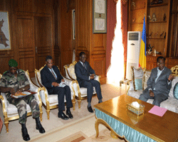 عقب أكثر من 3 أشهر من التدخل العسكري التشادي في شمال دولة مالي وبعيد النصر الباهر الذي حققه جنودنا البواسل أثناء حربهم ضد الإرهابيين والمتطرفين في جبال إيفوغاس وأضرار وكيدال، فقد إستقبل رئيس الجمهورية إدريس ديبى إتنو السيد/ كادري ديزيرى رئيس مفوضية لجنة المجموعة الاقتصادية لدول غرب إفريقيا، حيث تباحث الجانبان حول مختلف القضايا والمواضيع المتعلقة بالتدخل العسكري في مالي. السيد/ كادري شكر رئيس الجمهورية إدريس ديبى إتنو القائد الأعلى للجيش التشادي على تلبيته لنداء الأمم المتحدة والاتحاد الإفريقي لا سيما تلبيته لنداء المجموعة الاقتصادية لدول غرب إفريقيا ودولة مالي للتدخل العسكري في شمال مالي لمحاربة وطرد الجهاديين المتشددين من المناطق التي كانوا يسيطرون عليها. بعد خروجه من المقابلة السيد/ كادري ديزيرى رئيس لجنة مفوضية المجموعة الاقتصادية لدول غرب إفريقيا قال بأنه خلال المقابلة قدم باسم رؤساء وشعوب دول غرب إفريقيا التعازي الحارة لرئيس الجمهورية إدريس ديبى إتنو نتيجة إستشهاد عدد من الجنود التشاديين في شمال دولة مالي، مشيراً إلى أن تدخل تشاد في هذه القضية يعتبر تدخلاً إيجابياً لأنه ساعد في إستتباب الأمن والاستقرار في شمال مالي وجميع الدول تشجع هذا القرار الذي إتخذته الحكومة التشادية بخصوص محاربة الإرهاب. وأخيراً أكد السيد/ كادري بأنه خلال هذه الزيارة سوف يقوم بزيارة إلى مقبرة الجنود التشاديين الذين استشهدوا في مالي. والجدير بالإشارة فإن المجموعة الاقتصادية لدول غرب إفريقيا تربطها علاقات قوية مع بقية الدول الإفريقية خاصة مع تشاد وذلك في مجالات التجار ة والاقتصاد والسياسة والثقافة وغيرها من مجالات التعاون .
