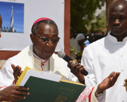 بدأ حفل وضع حجر أساس بناء التجمع الكنسي الكاثوليكي بكلمة ترحيبية قدمها عمدة بلدية شكر فيها فخامة رئيس الجمهورية إدريس ديبي اتنو علي هذا الإنجاز الكبير والذي يعتبر بمثابة معلم حقيقي وواجهة وطنية في العاصمة أنجمينا . كما تناول ناصية الحديث المدير العام للمشاريع الرئاسية الكبري كلمة قال فيها بأن مشروع النهضة التشادية الذي انطلق منذ العام 2010م يسير بشكل جيد وهذا بفضل فخامة رئيس الجمهورية إدريس ديبي اتنو والذي يريد تحقيق المساواة بين أبنا الشعب الواحد والتعايش السلمي بين الديانات لذا فإن مشروع هذا التجمع ينصب في نفس الإطار ، كما عرض المدير العام الجوانب الفنية للمشروع والذي بني علي مساحة [10400 متر مربع ] ويحوي التجمع بداخله كنيستين تسع كل واحدة علي عدد [5000] مصلي ، مباني للضيافة ، ومباني للاجتماعات وفصول دراسية عديدة ومسارح حديثة ويحوي المجمع أيضا بناء متحف كبير يضم المراحل الانتقالية للديانة المسيحية في تشاد ، وأضاف المدير العام في وصفه للمشروع بأنه مصمم علي الطريقة الأفريقية وهذا يؤكد التلاحم الإقليمي وإظهار الهوية الأفريقية من خلال هذا التصميم ومجمل المساحة إضافة إلي الحدائق التي بداخلها تبلغ [ 18500متر مربع ] ومن المتوقع زيادة المساحة لتصل إلي [30] هكتار ، ولم يعلن المدير العام عن القيمة المالية للمشروع إلا أنه اكتفي بأن هنالك عطاءات دولية للمشروع ستنشر للمنافسين في القريب العاجل ، أما المدة الزمنية فحدد من قبل المدير بأنها [ 36 شهرا ] أي [3سنوات ] . كما أضاف بأن الأعمال تجري أيضا في ترميم وتجديد كنيسة نوتردام بأنجمينا لأنها تعتبر رمز من رموز الدولة . أما الأسقف ماتياس انقرتيري فقد قدم عرض موجزا عن المشروع شاكرا فخامة رئيس الجمهورية علي البادرة الوطنية الكبيرة والتي بالكاد ستسهم في تقوية التعايش السلمي بين الأديان وقدم أيضا تاريخا عن بناء كنيسة نوتردام بأنجمينا ، وأخيرا قدم صلوات شكر خاصة إلي فخامة رئيس الجمهورية وعم بصلواته ربوع الوطن بأن يسوده والسلام والأمن والتنمية الشاملة والتقدم . وبعد أن وضع حجر أساس بناء المجمع الكنائيسي الكاثوليكي فقد صرح فخامة رئيس الجمهورية إدريس ديبي اتنو بحديث صحفي قال فيه بأن بناء هذا المجمع يسمح للمسحيين أداء فرائضهم الدينية أينما كانوا ومن ثم يسمح لرجال الدين بأن يؤسسوا نخبة صالحة لقيادة الوطن ومن ثم زرع المحبة والتسامح والإخاء ونشر السلام في ربوع الوطن .