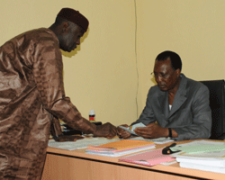 Léambiance à léEcole de la police nationale était tout ordinaire en cette matinée du 11 février. Agents recenseurs, contrôleurs, superviseurs et médecins, tous membres de la Commission nationale de contrôle des services de la police nationale (CONACOPOL), séattèlent à la mission qui leur a été confiée depuis une semaine par le Président de la République. Dans la cour de léécole, des centaines de policiers, leurs dossiers en main, attendent de passer devant la commission pour le contrôle obligatoire. Céest dans cette ambiance que le Président de la République IDRISS DEBY ITNO arrive à léEcole de la Police nationale. Comme à Moussoro où il a personnellement supervisé la réforme de léarmée tchadienne, le Chef de léÉtat est venu séinformer directement auprès des membres de la Commission nationale de contrôle des services de la police nationale (CONACOPOL) de leurs activités. « Travaillez sans état déâme, pas de favoritisme, pas de clientélisme, pas de parents, amis ou alliés. Vous êtes face à votre conscience », dira le Chef de léÉtat aux membres de la Commission. Très attentif aux instructions du Chef de léÉtat, les membres de la commission se font quotidiennement léécho des questions que se posent les NéDjaménois. Pourquoi léabsence des policiers dans les rues de la capitale se traduit par une certaine fluidité de la circulation et une baisse considérable déaccidents ? Céest bizarre, et pourtant, une des missions de la Police est déassurer la sécurité des citoyens dans les villes.