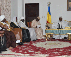 Je vous remercie beaucoup, au nom du peuple, du gouvernement tchadien et en mon nom. Les mots que vous venez de m’adresser, sont des voeux que nous renouvelons à chaque circonstance comme celle qui nous réunit aujourd’hui. Nous avons prié dans de bonnes conditions, ce matin à la Grande Mosquée, à l’occasion de l’Aid Al-adha qui, je le rappelle, n’est pas seulement une fête musulmane : c’est la fête de tous les Tchadiens. C’est une occasion pour vous de relever les maux et les dangers qui guettent notre pays, et il nous revient de prendre les mesures qui s’imposent. C’est un devoir pour nous tous ! Et à cette occasion, je formule mes vœux de santé, de longévité, de grandes réalisations pour tout un chacun de vous. J’implore le Tout-Puissant pour que la paix et la sécurité que nous vivons actuellement se consolident davantage et se pérennisent. Vous, leaders religieux, êtes à nos côtés depuis 23 ans, au service de vos communautés et de la nation. J’estime que votre combat à nos côtés, à travers les prières, est plus que le nôtre. Si de nos jours, musulmans ou chrétiens ne se sont pas confiés à Dieu, beaucoup de problèmes auraient mis à mal notre pays. Nous ne permettrons pas que ces choses viennent. Regardons aujourd’hui ce qui se passe chez nos voisins : au Cameroun ; au Nigeria, au Darfour, en RCA ou encore en Libye. Nous sommes au centre de tous ces foyers de tension. Nous ne serons pas épargnés si nous, Tchadiens, en général et particulièrement les religieux, ne retournions pas vers Dieu. L’imam a parlé ce matin, dans son sermon, du bon comportement d’un musulman. Une personne qui n’a pas un bon comportement est assimilable à un animal. Et la situation dans laquelle nous nous trouvons actuellement, exige une mobilisation de votre part afin de mener, une large campagne de sensibilisation. Je vous demande de redoubler d’efforts pour un travail de fond sur toute l’étendue du territoire. Ce que l’imam a dit ce matin est extrêmement important et je demande aux journalistes, à cet effet, de traduire ce message pour que tous les Tchadiens, musulmans ou non, retiennent quelque chose. Si ce n’est votre vigilance, vous, en tant que religieux, notre pays aurait été secoué par ces problèmes actuels depuis longtemps. Je suis témoin de cela ! Vous m’avez averti sur ce qui se produit actuellement, depuis les années 90. Et j’avais pris des mesures en fermant plusieurs ONG. Nous ne voulons pas de l’argent empoisonné qui provient de l’étranger dans notre pays. Nous avons les moyens matériels et humains pour construire des mosquées, des écoles, ou encore, former des religieux. C’est nous, au contraire, qui devrions exporter dans ce domaine et non importer. Ces gens propagent des idéologies très dangereuses. Signalez ce genre de comportements à risque aux autorités qui sont, dans l’obligation, de prendre les mesures qui s’imposent ! Si un responsable, un ministre, décide le contraire, il doit automatiquement céder son fauteuil ! Je ne veux aucune organisation étrangère sur notre sol qui introduit des problèmes et des idéologies. Ce qui s’est produit ces derniers jours à Abéché me pousse à demander si c’est un rêve ou c’est une réalité. Si nous ne faisons pas attention, des pratiques plus dangereuses que celles-là, verront le jour dans notre pays. Nous devons assumer entièrement `notre responsabilité. Ceux qui importent des fonds empoisonnés doivent savoir que les portes sont désormais fermées ! Notre société a besoin d’un travail de sensibilisation. Je voudrai vous faire une confidence. En tant que Président de ce pays depuis 23 ans, il y a une chose qui me préoccupe tous les jours, je passe des nuits blanches à réfléchir à cela. Je n’ai pas fait cas auparavant, et je vous le dis aujourd’hui : je me demande comment le pays pourrait avancer avec le mauvais comportement qui caractérise nos cadres aujourd’hui ? Du ministre au planton, ils se sont tous mis au vol des deniers publics. Presque 30 % du budget national va directement dans leurs poches. Malgré nos efforts de contrôle, rien ne change. Ce que font les ministres des autres pays, avec peu de moyens, n’a rien à voir avec les nôtres, malgré les moyens colossaux que nous mettons à leur disposition. En cas d’absence du Président de la République, les ministres et autres cadres ne viennent même pas au bureau. Ils ne veulent pas travailler. Le pays ne pourra se développer ainsi. Chacun veut une nomination à un tel ou tel poste juteux, pas pour servir, mais rien que pour voler. Il faut que nous changions ces mauvais comportements. Votre rôle est primordial pour que notre société et nos cadres se redressent et reviennent à la raison. Votre rôle me tient à cœur. Vos efforts, avec vos frères, catholiques ou protestants, ont fait de notre pays, une nation citée en exemple. Nous n’avons pas besoin d’une autre génération comme celle des années 70 où les gens se regroupaient par ethnie, communauté ou par religion. Nous devons tout faire pour une génération responsable. Je suis toujours à votre écoute. Et je souhaite que votre guerre contre le mal se solidifie. Merci.