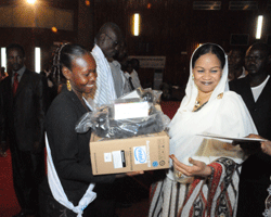 La Première Dame HINDA DEBY ITNO a remis ce matin des prix déencouragement et de félicitations aux meilleurs bacheliers de la session 2011.