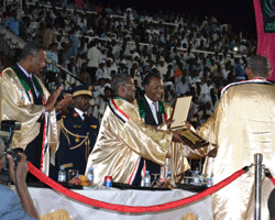 L’investissement le plus sur est celui de la formation des ressources humaines. Les Présidents tchadien et soudanais ont une même vision sur le développement des ressources humaines compétentes. Le Chef de l’État IDRISS DEBY ITNO a toujours placé, la jeunesse au cœur de sa politique de développement socioéconomique. C’est en ce sens que son homologue soudanais Oumar Hassan El Béchir l’a convié à assister à la cérémonie marquant la sortie de la 2ème promotion de l’Université de la Mer rouge à Port Soudan. Ils sont environ 14.000 étudiants à décrocher leurs diplômes dans différents domaines pour les années académiques allant de 2008 à 2013. Ces futurs cadres ont défilé devant les parents, amis, enseignants et autres autorités du pays, venus nombreux saluer, leurs mérites sous les signaux des feux d’artifice tirés en signe de joie. Parmi eux, un invité de marque : le Président de la République IDRISS DEBY ITNO accompagné, d’une délégation constituée de hautes personnalités. Les lauréats, par la voie de leur représentant ont remercié, les dirigeants soudanais qui déploient tous les moyens nécessaires au profit de la formation de la jeunesse. Les responsables de l’Université, le gouverneur de l’État de la mer Rouge et la ministre de l’Enseignement supérieur se sont relayés pour féliciter, les étudiants pour leur succès, les enseignants pour leur encadrement de qualité et les parents pour les efforts colossaux qu’ils ne cessent de consentir, pour la réussite de leurs progénitures. Tous ont adressé, leurs vifs remerciements au Président de la République IDRISS DEBY ITNO, d’avoir honoré de sa présence, la cérémonie. « Des remerciements sincères émanant du fond du cœur », dira Oumar Hassan El Béchir qui estime que la présence du Chef de l’État IDRISS DEBY ITNO est une preuve que le peuple tchadien et soudanais sont fortement liés par un destin commun. Raison pour laquelle, le Président tchadien était la première personnalité à être primée, au cours de la cérémonie. Il sera suivi de son homologue Oumar Hassan El Béchir et bien d’autres éminentes personnalités ayant contribué à la promotion de l’enseignement supérieur au Soudan. Dans son discours, le Chef de l’État soudanais s’est réjoui des prouesses réalisées dans le secteur de l’Enseignement supérieur. Il a vanté le mérite des étudiants, sortis des universités soudanaises. Selon Oumar Hassan El Béchir, ces lauréats, font la fierté du Soudan, à travers le monde. « L’Université de la mer rouge symbolise la révolution de notre enseignement supérieur », a déclaré Oumar Hassan El Béchir. En dehors des nationaux, cet établissement d’enseignement supérieur accueille également des étudiants de diverses nationalités. Désormais, des Tchadiens seront également admis à l’Université de la Mer Rouge à Port Soudan. Oumar Hassan El Béchir a annoncé séance tenante, l’octroi de 10 bourses à cet effet. Une bonne nouvelle fortement applaudie par le public. La fin de la cérémonie a été ponctuée de chanson dédiée à la délégation tchadienne.