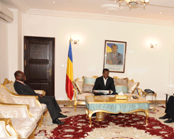 Les relations séculaires entre le Tchad et le Congo se fructifient chaque jour davantage par une coopération multiforme et ce, grâce aux échanges réguliers entre les plus hautes autorités des deux pays. Le Conseiller diplomatique du Chef de lÉtat congolais Denis Sassou Nguesso a tout naturellement évoqué avec le Chef de lÉtat IDRISS DEBY ITNO, la coopération bilatérale. Mais le point dominant de laudience a été les troubles politiques que vivent certains pays de la sous-région. « Nous avons abordé la crise politique en Centrafrique et les foyers de tension qui existent dans certains États de la sous-région, des questions sur lesquelles les deux Chefs dÉtat se concertent régulièrement », a déclaré lémissaire congolais. Avant de quitter le palais présidentiel, lAmbassadeur Adouki Martin a eu lamabilité dadresser ses vux les meilleurs, au peuple tchadien, à loccasion du 53ème anniversaire de lindépendance du pays qui sera célébré ce dimanche.