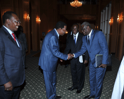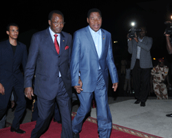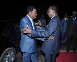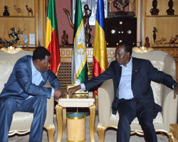 Le Chef de léÉtat béninois Thomas Boni Yayi en visite officielle depuis mardi a eu dans la soirée un long entretien en tête à tête de plus déune heure au Palais présidentiel avec son homologue IDRISS DEBY ITNO. Le nouveau Président en exercice de léUnion africaine qui a sillonné la Guinée équatoriale, le Gabon ,le Congo Brazza a eu de fructueux entretiens avec le Président de la République IDRISS DEBY ITNO. Sa visite au Tchad séinscrit dans le cadre des consultations permanentes entre les deux Chefs déÉtat qui ont une vision commune des questions du continent et celles relatives à léintégration africaine.