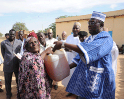 المدير العام للمكتب المدني برئاسة الجمهورية السيد/جوزيف جمر نقار داد ناجي يقدم باسم السيدة الاولي هندة ديبي اتنو مساعدات غذائية الي الشرائح الضعيفة بمدينة ابشي حاضرة اقليم وداي