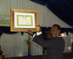 Le mouvement parental africain organisé au sein de la Fédération africaine des associations des parents déélèves et déétudiants(FAPE) a honoré ce mercredi matin, le Président de la République IDRISS DEBY ITNO. Cette Fédération a élevé le Chef de léÉtat tchadien au rang de Président déhonneur de la FAPE. Céest le président de ladite organisation, le congolais, Martin Itoua qui a remis la médaille déor et le diplôme déhonneur au Chef de léÉtat au cours déune cérémonie au palais présidentiel en présence de nombreux invités. Cette décision a été prise à léunanimité par les membres de la FAPE lors de leur dernier congrès tenu à NéDjaména du 19 au 21 février 2009. En souhaitant la bienvenue aux différents invités conviés à cette cérémonie, le président de la Fédération des associations des parents déélèves du Tchad (FENAPET), Bamaye Mamadou Boukar,très ému, a remercié et félicité le Président de la République pour son engagement sans faille pour une éducation de qualité au Tchad. « QuéAllah guide vos pas pour conduire lééducation de léensemble des fils et filles du Tchad pour le développement harmonieux du pays. Cette distinction est le couronnement de vos louables efforts pour une éducation de valeur au Tchad », a déclaré M. Bamaye. Pour le président de la FENAPET, le mérite du Chef de léÉtat en la matière néest plus à démontrer. Dans son intervention, le Secrétaire général de la FAPE, Christian Ipoua a souligné que le prix attribué au Chef de léÉtat IDRISS DEBY ITNO traduit le couronnement de ses efforts fournis dans plusieurs domaines notamment celui de lééducation. « Vous faites partie incontestablement, des leaders africains convaincus de la renaissance de leurs pays et de léAfrique par lééducation », soutient Christian Ipoua. En effet, léenseignement est la première priorité du Chef de léÉtat IDRISS DEBY ITNO. Ses investissements dans le domaine éducatif sont réels, palpables et encourageants. Céest avec honneur que le président de la FAPE a remis la médaille déor et le diplôme déhonneur au Chef de léÉtat. Le nouveau Président déhonneur de la FAPE, IDRISS DEBY ITNO très ému par le choix porté sur sa personne a remercié la Fédération africaine des parents déélèves et étudiants pour cette distinction. « Céest un grand honneur pour moi. Je suis fortement ému. Cette distinction est une marque de confiance à mon pays et aux efforts multiformes consentis par les parents déélèves et le gouvernement tchadien dans lééducation et la formation de la jeunesse », dira le Chef de léÉtat. Le Président de la République a ensuite salué les efforts consentis par le Tchad dans le domaine de lééducation. « Céest pour favoriser la culture de léexcellence que nous avons rendu gratuit la scolarisation de nos enfants et obligatoire en ce qui concerne les filles. Nous avons construit grâce aux revenus pétroliers, sept mille salles de classe ces cinq dernières années. Il en a été de même pour les écoles normales des instituteurs dans les régions. Toutes ces actions visent à rattraper le retard quéa accusé notre pays à cause des troubles qui léont secoué pendant quatre décennie », a indiqué le Chef de léÉtat. Le Président de la République IDRISS DEBY ITNO a dédié sa distinction aux élèves et étudiants tchadiens et africains. La Fédération africaine des parents déélèves et étudiants dont le Tchad est membre fondateur créée en 1995 à Brazzaville au Congo regroupe 18 pays.
