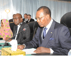 DISCOURS DOUVERTURE DE SON EXCELLENCE, MONSIEUR LE PRESIDENT DE LA REPUBLIQUE, A LA REUNION DE HAUT NIVEAU SUR LE SAHEL. Monsieur le Secrétaire Général de lOrganisation des Nations Unies ; Madame la Présidente de la Commission de lUnion africaine ; Monsieur le Président de la Banque Africaine de Développement ; Monsieur le Commissaire au Développement de la Commission de lUnion Européenne; Monsieur le Représentant spécial du Président de la Banque Mondiale ; Distingués Invités, Mesdames, Messieurs. Permettez-moi tout dabord, de vous souhaiter la cordiale bienvenue et un agréable séjour au Tchad. Je vous remercie davoir fait le déplacement de Ndjamena, en dépit de vos agendas respectifs très chargés, et vous exprime par la même occasion, toute ma gratitude pour lintérêt que vous portez à la paix et à la stabilité dans le monde et particulièrement pour cette initiative noble et salutaire visant à assurer la sécurité et le développement durables au Sahel. Mesdames, Messieurs, Le constat unanimement partagé est que : « le Sahel est une des régions les plus pauvres du Monde. Il est confronté à la fois aux problèmes dextrême pauvreté, deffets du changement climatique, des crises alimentaires fréquentes, de croissance rapide de la population, de gouvernance fragile, des tensions internes persistantes, dextrémisme violent, des trafics illicites et des menaces que le terrorisme fait peser sur la sécurité ». Les approches de développement telles que déclinées dans la stratégie des Nations Unies pour le Sahel, demeurent tributaires de lenvironnement sécuritaire. En effet, La fragilité des pouvoirs publics et leurs limites à ladministration de lespace sahélien, longtemps traversé par des lignes de fracture, ont révélé le dénuement organisationnel de la région et partant du continent. Au regard de cette situation, le Tchad demeure plus que jamais préoccupé par son environnement immédiat où les crises se pérennisent. Cest le cas du Darfour au Soudan où, en dépit de la présence sur le terrain dune mission conjointe de la Communauté internationale (UNAMID), la situation demeure préoccupante. La Libye avec un conflit interne déstructuré où les milices se partagent le territoire, dans lequel on assiste à la circulation et la prolifération des armes qui alimentent le terrorisme et le trafic de tout genre. Le Nigeria fait face à la secte Boko Haram, aux velléités transfrontalières dont lorientation est la remise en cause de lislam confrérique. La RCA est en proie à une crise sécuritaire et humanitaire sans précédent, avec parfois des relents de nature confessionnelle. Toutes ces situations aux conséquences dramatiques ont amené notre pays à :-accueillir plus de 300.000 refugiés soudanais à lEst de son territoire, environ 75.000 centrafricains au sud du pays ; -déployer de façon permanente 1500 hommes dans le cadre de la force mixte avec le Soudan afin de sécuriser la frontière commune, 2.000 hommes à la MINUSMA au Mali, plus de 850 hommes en RCA dans le cadre de la MISCA, 300 hommes dans le cadre de la Force tripartite Tchad- Cameroun- Nigeria pour le contrôle des eaux et des frontières du Lac-Tchad afin endiguer les éventuelles ramifications sectaires. A cela sajoutent des milliers dautres soldats pré positionnés sur le territoire national. Mesdames, Messieurs; Cette forte mobilisation de notre pays, entraine incontestablement un coût humain et financier considérable que le Tchad ne peut seul, supporter longtemps. Cest pourquoi, jinvite la Communauté internationale à accorder une attention soutenue au Sahel et rappelle par la même occasion, les conclusions pertinentes du 5ème Sommet extraordinaire des Chefs dÉtats et de gouvernement de la CEEAC réunis à Ndjamena le 21 Octobre 2013, qui sollicitent un mandat robuste, éventuellement sous chapitre 7, à la MISCA pour sécuriser lensemble du territoire, accompagner la transition à son terme et apporter un appui financier et logistique. Lévaluation conjointe Nations-Unies, Union africaine et autres partenaires doit aider à cette fin. Mesdames, Messieurs ; La sécurité au sahel nécessite aussi un soutien fort à la mise en uvre de la Capacité Africaine de Réponse immédiate aux Crises (CARIC), en attendant lopérationnalisation de la Force Africaine en Attente (FAA). Le Tchad, une fois de plus, est totalement engagé dans ce processus comme en atteste sa participation à la Réunion de la CARIC, tenue le 5 Octobre dernier en Afrique du Sud. Mesdames, Messieurs. Comme vous le constatez, ce tableau que je viens de vous présenter, brosse de manière critique, les enjeux sécuritaires du Sahel et met à lépreuve, la capacité de laction internationale à agir avec efficacité pour endiguer la menace sécuritaire à laquelle cette région est confrontée, à créer par la même occasion, les conditions de base dun développement économique et social, gage de stabilité et de prospérité. Je vous remercie.