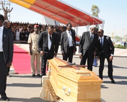 Cest le Tchad en miniature qui a rendu, ce 28 novembre, à la Place de la Nation, un dernier hommage au serviteur de Dieu feu Mathias Ngartéri Mayadi. Le Président de la République IDRISS DEBY ITNO, le Premier ministre Kalzeubé Payimi Deubet, les membres du gouvernement, la représentation nationale, les corps constitués et de nombreux fidèles ont tenu, à honorer pour la dernière fois la mémoire de celui, qui fut, lartisan et lartificier du dialogue interconfessionnel au Tchad. Cest dans une ambiance pesante que les différents orateurs, ont, tour à tour, retracé, magnifié et vanté les uvres de lillustre disparu. LAdministrateur du Diocèse de NDjaména, Abbé Karamba Alphonse, le Secrétaire Général de lEntente des églises et missions évangéliques au Tchad (EEMET), Pasteur Souina Potifar, le président de la Conférence épiscopale du Tchad, Mgr Jean-Claude Bouchard et le Nonce apostolique représentant du Saint siège, ont clamé, à lunisson que « Mgr Mathias Ngartéri Mayadi a combattu le bon combat. Il a achevé sa course la bible à la main et gardé sa foi ». Le président du Conseil supérieur des affaires islamiques du Tchad, Cheikh Hissein Hassan Abakar, dira pour sa part que « Cest une référence historique qui sen est allé. Il est pour moi, un ami personnel. Je remercie, au nom, des hommes de Dieu, le Chef de lÉtat qui a déployé, dénormes moyens pour évacuer feu Mathias et affréter son avion personnel pour rapatrier le corps. Ce geste du Chef de lÉtat restera indélébile ». Dans une voix grave et pleine démotion, le Président de la République IDRISS DEBY ITNO, a déclaré que le peuple tchadien vient de perdre lune de ses boussoles de concorde nationale. « Jai apprécié la noblesse de son cur, ses rares qualités de citoyen qui porte un vif intérêt à la formation de la jeunesse et qui fut un artisan dévoué de la cause de lunité et de la paix. Feu archevêque Mathias Ngartéri Mayadi, faisait preuve dun sens élevé de la défense des intérêts de son pays et ses opinions républicaines nont jamais varié. Il mérite le plus noble éloge quon puisse faire dun citoyen modèle parce quil fut à la fois utile à léglise et à la République », a-t-il livré dans son oraison funèbre. Cest après ce témoignage émouvant que le Président de la République a remis officiellement la dépouille mortelle à la Conférence épiscopale du Tchad. Monseigneur Mathias Ngartéri Mayadi est décédé le 19 novembre dernier de suite dun accident cardio-vasculaire alors quon lévacuait à Lyon pour des soins. Natif de Bédaya (Mandoul) et issu dune famille des pêcheurs et chasseurs, Mathias Ngartéri Mayadi est né en 1942, dun père polygame. Après avoir passé son enfance à faire la chasse et la pêche, il quitta son village dès 1951 pour suivre son grand-frère à Koumougo où dans la même année, il fit ses premiers pas à lécole. A la création de lécole dans les années 50, Mathias fit son retour dans son village natal Bédaya où il découvrit en 1955 la religion catholique avec larrivée des premiers prêtres. Cest ainsi quil devint le 1er baptisé de lEglise catholique de Bédaya. La vocation de Mathias commença dès les premiers cours de catéchèse initiés dans son village. Ainsi, il sinscrivit au Collège de Bédaya et continua plus tard, à lécole officielle de Koumra puis à fort Archambault actuel Sarh. Après son certificat détudes, Mathias Ngartéri Mayadi entra au séminaire de Fort Archambault dans les années 58-59. Après des stages diaconal et sacerdotal notamment au Cameroun puis en France, Mathias fut ordonné prêtre, le 30 décembre 1978, à Sarh. Il est titulaire dune licence en Théologie et dun DEA en économie obtenus en France. Il a servi dans plusieurs paroisses. Il fut nommé évêque, titulaire de Tuburnica et auxiliaire de Sarh, le 28 octobre 1985, puis 1er évêque du Tchad, le 12 avril 1986. Mathias a été fait 2ème évêque de Sarh, le 07 mars 1987. Après cette nomination, il fut transféré, au siège épiscopal de Moundou, le 11 juin 1990. Mathias Ngartéri Mayadi a été nommé, Archevêque de NDjamena, le 24 juin 2003. Cest après 10 ans, à la tête de cet archidiocèse que Monseigneur Mathias Ngartéri Mayadi tira sa révérence à 72 ans laissant derrière lui, beaucoup de projets ambitieux pour le pays, mais aussi pour léglise catholique du Tchad. Feu Mgr Mathias Ngartéri Mayadi est inhumé provisoirement ce 28 novembre, au Séminaire Saint Luc de Bakara, à la sortie Sud-Est de NDjaména. Lorsque les travaux de réfection de la Cathédrale de Notre Dame seront achevés, sa dépouille sera transférée à la Cathédrale Notre Dame de la paix, où elle y reposera définitivement.