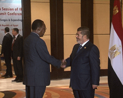 Céest par des récitations tirées du saint-coran et des prières que séest ouvert ce mercredi dans la salle des conférences de léHôtel « Fairmont » du Caire , le 12ème sommet des dirigeants de léOrganisation de la coopération .Dans son mot de bienvenue, le Chef de léÉtat égyptien Mohamed Morsi ,hôte du sommet et Président en exercice du 12ème sommet de léOCI a appelé à une solidarité agissante entre les pays membres de léOCI et à la cohésion en vue déassurer, le développement durable dans le monde arabo-musulman. Séagissant de la Syrie,Mohamed Morsi a demandé la restauration de la démocratie dans ce pays en proie à un conflit meurtrier depuis bientôt deux ans. Le Président en exercice sortant de léOCI, le Chef de léÉtat sénégalais Macky a dans son rapport moral dressé le bilan des activités de léOCI sous la présidence du Sénégal. Un bilan positif selon le Chef de léÉtat sénégalais. A propos de la situation qui prévaut au Mali, Macky Sall a demandé le soutien des pays membres de léOrganisation islamique pour rétablir léintégrité territoriale et la souveraineté du Mali mises à sac par des groupes terroristes armés. Le Secrétaire général de léOCI, le Turc Ekmeledin Ihsanoglu a demandé pour sa part aux dirigeants de léOCI dééuvrer pour le progrès de léorganisation. Les débats sur le thème du sommet axé sur les nouveaux défis et les nouvelles opportunités qui séoffrent à léOCI sont focalisés sur les conflits qui déchirent le monde arabo-musulman ;le phénomène de léislamophobie ;le renforcement et le développement de la coopération scientifique, culturelle, sociale et en matière de communication entre les États membres de léOCI.