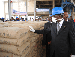 « Cette cimenterie a un but social. Céest pour atténuer la souffrance des Tchadiens. A cet effet, le prix déun sac à la sortie déusine est fixé à 4.200 FCFA. Ce prix ne doit pas excéder 6.500 FCFA, même si léon doit y inclure les frais de transport ». En faisant cette déclaration juste après avoir inauguré la cimenterie de Baoré construite en 30 mois à hauteur de 46 milliards, le Président de la République IDRISS DEBY ITNO poursuit la Renaissance de la nation tchadienne. Selon les explications données, cette cimenterie, constituée dune éusine qui abrite une centrale électrique de 10 mégawatts, a une capacité nominale de 750 tonnes de ciment par jour. Mais la production va augmenter graduellement. En régime normale, léusine produira lééquivalent déun chargement de 25 camions de 30 tonnes de ciment chacun par jour. Par année, léusine fonctionnera les 10 mois et les deux autres mois seront consacrés à la révision et à la maintenance des installations. Deux types de ciment sont fabriqués à Baoré : le ciment Portland de résistance 42.5 qui correspond au « Dangoté » nigérian, et le Portland de résistance 32,5 qui correspond au « Cimencam » camerounais. La Société nationale de cimenterie (SONACIM) et léentreprise chinoise CAMCE se sont engagées à former le personnel tchadien. Léambassadeur de la République Populaire de Chine au Tchad, M. Yang Guangyu a annoncé que la gestion de la cimenterie sera assurée entièrement par la partie tchadienne. « La Chine entend rester aux côtés du Tchad pour léaccompagner et le soutenir dans sa longue marche vers la Renaissance de la Nation », a-t-il fait savoir. Il a, en outre, demandé le bitumage de léaxe Kélo-Pala-Baoré en vue de soutenir concrètement le développement de la cimenterie. « Excellence, Monsieur le Président de la République, en décidant de construire des cimenteries partout dans le pays, vous êtes incontestablement léinitiateur déune nouvelle civilisation : la civilisation des grands travaux », a relevé le Ministre des Mines et de la géologie, M. Nodjitoloumbaye. Car pour lui, le ciment est un élément principal dans la construction de la plupart des infrastructures de base. Les perspectives sont prometteuses parce que la cimenterie de Baoré est construite sur un site de 7 millions de tonne de calcaire exploitables sur plus de 20 ans. Un contrat déassistance technique a été signé entre le Tchad et la Chine. Il se résume, déaprès le Ministre, en trois points : la partie chinoise séengage à assurer la production du ciment ; elle assure également la maintenance des outillages de léusine ; elle assure la formation des techniciens tchadiens pour quéils prennent la relève du personnel chinois après un an. Après avoir coupé le ruban, le Président de la république IDRISS DEBY ITNO, accompagné des corps constitués a visité léusine avant déassister à la sortie des sacs de ciment made in Chad.