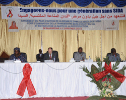 Céest dans la grande salle des conférences du ministère des Affaires étrangères et de léintégration africaine bien remplie que la Première Dame HINDA DEBY ITNO a procédé au lancement officiel de son Plan déaction pour léélimination de la transmission mère-enfant du VIH et en faveur de la santé de la reproduction. La cérémonie a vu la présence du Premier ministre Emmanuel Nadingar,des membres du gouvernement, ceux du corps diplomatique, membres des cabinets de la Présidence et de la Primature, des partenaires au développement et de nombreuses personnalités et autres invités parmi lesquels, le personnel du corps médical et les membres de plusieurs associations de lutte contre le VIH/SIDA. Le point focal de léOrganisation des Premières Dames déAfrique contre le Sida (OPDAS) Mme Ngarbatnan Carmel Soukate , a dans son allocution vanté, les mérites des Premières Dames déAfrique parmi lesquelles ,la Première Dame du Tchad HINDA DEBY ITNO qui séinvestissent de plus en plus pour apporter leur contribution dans la résolution des problèmes de la cité. Pour Mme Ngarbatnan Carmel, les Premières Dames séinvestissent dans la lutte contre la pauvreté, léaccès à lééducation, à la santé, léaccès à léeau potable, à léénergie et dans bien déautres secteurs au bénéfice des populations et des couches vulnérables. Cette vision collective des Premières Dames devait souligner le point focal de léOPDAS a vu le jour en 2002 à Genève en Suisse lors de la conférence internationale sur le Sida. Léassistance a suivi avec intérêt un sketch dénonçant le mauvais comportement des sages-femmes à léégard déune femme en travail. Le secrétaire exécutif du Conseil national de lutte contre le sida (CNLS) docteur Barou Djouater a salué léengagement de la Première Dame HINDA DEBY ITNO dans la lutte contre le VIH/SIDA et le soutien apporté par le Président de la République IDRISS DEBY ITNO dans la gratuité des soins et la prise en charge des malades du VIH. Le Coordonnateur résident du PNUD a relevé que le Système des Nations unies entend poursuivre ses efforts pour appuyer les objectifs mentionnés dans léagenda de la Première Dame HINDA DEBY ITNO. Dans leurs « Déclarations déengagement, » le ministère de léAdministration du Territoire et de la Décentralisation et léAssemblée nationale représentés respectivement par le ministre Bachar Souleymane Ali et Docteur Haroun Kabadi se disent disposés à accompagner la mise en éuvre du Plan déaction de la Première Dame HINDA DEBY ITNO pour zéro nouvelle infection du VIH/SIDA, zéro décès lié au VIH et zéro discrimination à léendroit des personnes vivant avec le VIH. Dans son intervention, la Première Dame HINDA DEBY ITNO a indiqué que léOrganisation des Premières Dames vient en appui aux engagements pris par les plus hautes autorités en vue déatteindre les objectifs du millénaire pour le développement.« LéOPDAS dispose déun plan déaction qui en plus des questions liées au VIH/SIDA prend en compte les facteurs qui ont un impact sur la qualité de vie des groupes vulnérables que sont, les femmes et les enfants » a déclaré HINDA DEBY ITNO. ».Il séagit entre autres, de la prévention de la transmission mère-enfant,la prise en charge des orphelins et autres enfants vulnérables, la santé de la reproduction, des pratiques traditionnelles néfastes, la maternité sans risque et de léaccès à lééducation des filles.