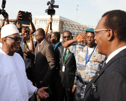 Depuis quelques jours, la ferveur s’est emparée de Bamako. La capitale malienne qui a retrouvé quiétude et sérénité vit un grand et historique événement ce jeudi, 19 septembre 2013. Plus d’une vingtaine de Chefs d’État et de gouvernement assistent dans la capitale malienne à l’investiture du tout nouveau Président malien, Ibrahim Boubacar Keïta, démocratiquement élu le 11 août dernier avec plus de 77% de suffrages. Le Président de la République IDRISS DEBY ITNO qui a contribué efficacement à restaurer la paix et la démocratie dans ce pays frère est l’un des tous premiers Chefs d’État à fouler le sol malien mercredi en début d’après-midi. Il a été reçu avec tous les honneurs. Le nouveau locataire du Palais de Koulouba, IBK en personne est venu l’accueillir à l’aéroport Bamako Senou. Le Président malien avait débuté par le Tchad, sa première sortie à l’étranger juste après son élection. Il était venu remercier de vive voix, le Président de la République IDRISS DEBY ITNO pour le grand rôle joué par le Tchad dans la libération du septentrion malien aux mains des narcoterroristes. IBK et IDI s’entendent à merveille en témoigne leurs chaudes accolades à l’accueil. Après un entretien épistolaire au salon d’honneur de l’aéroport, le cortège présidentiel s’est ébranlé en direction de l’hôtel Radisson de Bamako. La grande colonie tchadienne vivant au Mali a tenu à souhaiter la bienvenue et un agréable séjour au Chef de l’État et à la délégation qui l’accompagne. La cérémonie d’investiture du Président IBK ce 19 septembre se déroule en 2 phases. La première, le matin, au stade du 26 mars de Bamako. Cinq interventions marquent cette cérémonie. Tour à tour, François, Hollande, Allassane Dramane Ouattara, Idriss Deby Itno, Mohamed VI Roi du Maroc et Ibrahim Boubacar Keïta vont prononcer des allocutions. La seconde phase a pour cadre le Palais de Koulouba où les Chefs d’État français, ivoirien, tchadien et malien vont animer conjointement une conférence de presse. Nul doute que la question de la paix au Mali et de la lutte contre le terrorisme occuperont une place de choix. Le nouveau Président malien, investi officiellement ce jeudi aura fort à faire. De nombreux défis l’attendent. La réconciliation nationale, la lutte contre le terrorisme et la relance de l’économie nationale, sont autant de préoccupations qui sont notées dans son agenda. A Bamako, le Chef de l’État a un programme très chargé avec des séries de rencontres, notamment avec le Président François Hollande, ses pairs de la sous-région et quelques autres personnalités.