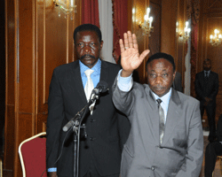 Céest dans une ambiance sereine que séest déroulée léaudience solennelle consacrée à la prestation de serment des deux nouveaux membres du Haut Conseil de la Communication. Il séagit de Abakar Ali Mahamat journaliste professionnel et de Monsieur Ngaroyal Mbaidedjim Christophe représentant du monde de la culture et des arts. Le conseiller à la Cour suprême Adjib Koulamallah représentant le président de la cour suprême Abdérahim Birémé Hamit en mission a tout déabord convié léassistance à observer une minute de silence en mémoire des vaillants soldats de léarmée nationale tchadienne tombés sur le champ déhonneur au Mali. Ensuite le greffier en chef de la cour suprême Médide Memndigngar a été convié à donner lecture du décret de nomination des deux nouveaux membres du HCC qui ont un parcours riche déexpériences. Dans ses réquisitions,le premier avocat général près de la cour suprême Issa Sokoye a tenu à rappeler aux récipiendaires,le rôle combien important du Haut Conseil de la Communication en matière de liberté de presse. Issa Sokoye a demandé aux récipiendaires de remplir fidèlement leur mission pour mériter la confiance placée en eux tout en rappelant le rôle important du Haut conseil de la communication dans la régulation de la liberté de la presse .Une liberté acquise aux prix de mille sacrifices grâce au Président de la République IDRISS DEBY ITNO. Après avoir juré de ne pas faillir à leur mission en toute impartialité, le conseiller à la cour suprême Adjib Koulamallah a renvoyé Abakar Ali Mahamat et Ngaroyal Mbaidedjim Christophe à léexercice de leur fonction. A noter quéau cours de la prestation de serment des deux nouveaux membres du HCC,le Chef de léÉtat IDRISS DEBY ITNO était entouré pour la circonstance du Premier ministre Joseph Djimrangar Dadnadji,du président de léAssemblée nationale Haroun Kabadi,du président du Haut conseil de la communication Moustapha Ali Alifei, du ministre de la Communication Hassane syllah Bakary,celui de la Justice Garde des sceaux Abdoulaye Fadoul sabre, et de ses proches collaborateurs.