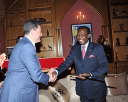 Les investisseurs russes de « Gazprom Bank » qui posent pour la première fois leurs valises au Tchad sont attirés par le secteur minier. Il séagit notamment de léénergie, du pétrole et du gaz. Le Conseiller du Président du Conseil déAdministration de « Gazprom Bank » M. Boris Ivanov quéaccompagne deux de ses collaborateurs et léAmbassadeur extraordinaire et plénipotentiaire de Russie au Tchad, M. Vladimir Prygin ont clairement exprimé au Chef de léÉtat IDRISS DEBY ITNO, leur ardent désir de prendre part activement au décollage socio-économique du Tchad en y investissant de manière conséquente. Proposition que le Président de la République IDRISS DBY ITNO, entouré de ses proches collaborateurs ont accueilli favorablement. Beaucoup de secteurs restent encore à être explorés. « Mon pays ouvre ses portes à ceux qui désirent venir y investir », a déclaré le Chef de léÉtat à ses hôtes. La coopération tchado-russe sera plus que jamais confortée grâce à une vision commune entre le Président de la République IDRISS DEBY ITNO et les investisseurs de « Gazprom Bank ».