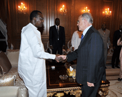 Léaudience séest déroulée en présence du Secrétaire général de la Présidence de la République, Mahamat Saleh Annadif, du Directeur adjoint du Cabinet civil du Chef de léÉtat, Ahmat Mahamat Bâchir et du ministre délégué auprès de la Présidence de la République, chargé de la Défense nationale et des Anciens combattants, Général Bénaïdo Tatola. La riche et fructueuse coopération militaire liant le Tchad et la France a constitué léobjet de léaudience accordée par le Président de la République IDIRISS DEBY ITNO au Secrétaire déÉtat, français auprès du ministre de la Défense et des Anciens Combattants, M. Marc Laffineur. Pendant plus de trois quart déheures, le Chef de léÉtat et le Secrétaire déÉtat français ont passé en revue les principaux accords de coopération militaire liant la France et le Tchad. Une nette convergence de vue séest dégagée pour le renforcement de cette coopération exemplaire. Pour le Secrétaire déÉtat, français auprès du ministre de la Défense et des Anciens Combattants, M. Marc Laffineur , son pays néest pas prêt à demander le départ des ses éléments basés au Tchad. Médecin Anesthésiste-réanimateur de son état, Marc Laffineur est nommé au poste de Secrétaire déÉtat, auprès du ministre de la Défense et des Anciens Combattants le 29 juin 2011. Il effectue ainsi sa première visite au Tchad en tant que membre du gouvernement français. Il passe le réveillon de Noël avec les soldats Français de léopération Epervier à NéDjaména.