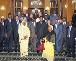 Après le report à une date ultérieure de la 16ème Conférence des Chefs déÉtat et de gouvernement des pays membres du CILSS et du 2ème Sommet des Chefs déÉtat de léAgence panafricaine de la Grande Muraille verte (APGMV), initialement prévus ce 10 avril à NéDjaména, les onze ministres des pays membres de léAgence panafricaine de la Grande Muraille verte (APGMV) et les treize des pays membres du CILSS sont venus ce mardi au palais présidentiel présenter les résultats de leurs travaux au Président de la République IDRISS DEBY ITNO, président en exercice du CILSS et de la grande muraille verte. Selon le ministre tchadien de léEnvironnement et des ressources halieutiques, Mahamat Issa Halikimi, président du conseil des ministres de léAgence panafricaine de la Grande Muraille verte (APGMV), le Chef de léÉtat IDRISS DEBY ITNO les a félicités pour les conclusions satisfaisantes de leurs travaux. Céest léAfrique en miniature réunie au sein de deux grands ensembles sous-régionaux qui séétait donnée rendez-vous à NéDjaména pour la 2ème Session ordinaire du conseil des ministres de léAgence panafricaine de la Grande Muraille verte (APGMV) et la 48ème Session ordinaire du conseil des ministres des pays membres du CILSS. Fier déavoir réunis ses frères africains autour de lui, le Chef de léÉtat a souhaité un bon retour dans leurs pays respectifs à chaque membre de la délégation.