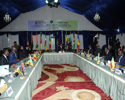 Les Chefs déÉtat et de gouvernement de la Communauté Economique des États d'Afrique Centrale (CEEAC) se sont donnés rendez-vous à nouveau à NéDjaména, quinze jours après la tenue du premier Sommet extraordinaire consacré à la situation centrafricaine née du coup d'État de la « Séléka ». Il s'agit pour les pays membres de la CEEAC de faire le point sur la feuille de route de la transition définie par eux. Pour cette 4ème rencontre au sommet, trois Chefs déÉtat de la CEEAC étaient présents dans la capitale tchadienne. Il séagit de : Denis Sassou Nguesso (Congo Brazzaville), Ali Bongo Ondimba (Gabon) et IDRISS DEBY ITNO (Tchad). Jacob Zuma (Afrique du Sud) dont le pays a payé un lourd tribut lors de la prise du pouvoir par la « Séléka », a également fait le déplacement de la capitale tchadienne ainsi que le ministre déÉtat béninois en charge des Affaires présidentielles, représentant son Président. A léexception de la RCA et du Cameroun représentés respectivement par leur Premier ministre et vice-premier ministre, les Chefs déÉtat, du Burundi, déAngola, de la RDC, de la Guinée Equatoriale, du Sao Tomé et Principe et du Rwanda ont envoyé leurs représentants. Les Nations-Unies, léUnion Africaine et léOrganisation internationale de la Francophonie (OIF) sont également représentés aux assises. Ouvrant les travaux, le Président de la République, IDRISS DEBY ITNO, Président en exercice de la CEEAC a remercié vivement ses pairs pour les efforts quéils ne cessent de déployer en participant régulièrement à toutes les assises sur la crise centrafricaine dont les fondements constitutionnels néexistent plus depuis le 24 mars dernier. Il a ensuite déclaré que « la RCA est comme une plaie au céur de léAfrique centrale. Malgré tous les remèdes prescrits, la plaie ne guérit pas en apparence. Il nous faut, nous mobiliser très sérieusement pour mettre fin définitivement à cette situation déinstabilité récurrente ». Abordant les décisions prises lors du Sommet extraordinaire du 03 avril tenu à NéDjaména, le Président en exercice de la CEEAC, IDRISS DEBY ITNO, a précisé que le schéma de sortie de crise préconisé pour le retour de la légalité constitutionnelle a été respecté par le président autoproclamé, M. Michel Djotodia. Poursuivant sa déclaration liminaire, le Chef de léÉtat tchadien a demandé à ses pairs déexaminer les progrès réalisés pour en tirer les conséquences. Pour finir, IDRISS DEBY ITNO a déploré la situation sécuritaire qui prévaut en ce moment en RCA.