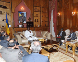 En séjour au Tchad, depuis samedi dernier, le Directeur général de la Fondation SANOFI, société pharmaceutique spécialisée dans la fabrication, la vente et la distribution des médicaments génériques à moindre coût a eu des entretiens très fructueux avec le Président de la République IDRISS DEBY ITNO .M .Christopher Viehbacher qui séest rendu à Moundou et à Doba a apprécié , sur le terrain ,les réalisations du gouvernement menées dans la lutte contre les maladies tropicales en particulier, le paludisme et la maladie du sommeil. Au cours de léaudience qui a duré plus déune heure en présence de léambassadeur de France au Tchad, Michel Reyverand De Menthon, le directeur général de Sanofi a présenté au Président IDRISS DEBY ITNO, sa Fondation qui éuvre inlassablement au niveau du continent africain dans la lutte contre les maladies endémiques. Très satisfait des entretiens avec le Président de la République IDRISS DEBY ITNO, le Directeur général de SANOFI a salué les efforts fournis par les plus hautes autorités de la République dans le domaine de la santé publique et entend renforcer le partenariat entre sa Fondation et le Tchad. Partenaire privilégié engagé dans la lutte contre la pauvreté et le sous-développement, la Fondation SANOFI, travaille, main dans la main en Afrique avec les autorités et les professionnels de la santé pour des solutions de santé adaptées et appropriées au bénéfice des populations démunies dans différents domaines thérapeutiques notamment la lutte contre le paludisme, la tuberculose, la maladie du sommeil et bien déautres maladies endémiques selon les recommandations de léOrganisation mondiale de la santé.(OMS). Au cours de léaudience, le Président de la République IDRISS DEBY ITNO était entouré du Secrétaire général adjoint de la Présidence de la République Bichara Doudoua,du Directeur adjoint du cabinet civil Ahmat Mahamat Bachir, du conseiller technique à la santé Docteur Mahamat saleh Younous et du ministre de la Santé publique Docteur Mahmout Nahor NéGawara.