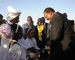 Grenier agricole du Tchad, la région du Salamat est aussi une des réserves fauniques la plus importante d’Afrique centrale avec le Parc national de Zakouma. Ce Parc qui a été créé en 1963, regorge en son sein des espèces en voie d’extinction telles que les girafes et des milliers d’autres espèces sauvages. C’est en vrai avant-gardiste de la flore et de la faune tchadienne, que le Président de la République IDRISS DEBY ITNO est arrivé à Am-Timan, chef-lieu de la région du Salamat, mercredi 19 février, dans l’après-midi. Le Chef de l’État a été accueilli à sa descente d’avion par le président du comité d’organisation de la fête du cinquantenaire du Parc national de Zakouma, le ministre de l’Environnement et des ressources halieutiques M. Mahamat Issa Halikimi, qui avait à ses côtés pour la circonstance, le Gouverneur de la région du Salamat, le général Blabagué Margoulaye. Le Président de la République a ensuite eu droit à tous les honneurs dus à son rang. De la piste d’atterrissage du chef-lieu de la Région du Salamat à son lieu d’hébergement, c’est une foule en liesse difficile à contenir qui a tenu à réserver un accueil mémorable au Chef de l’État. Debout dans sa voiture de commandement, IDRISS DEBY ITNO, rendait la politesse à la population d’Am-Timan. Ce jeudi, au campement touristique de « Tinga », à Zakouma, le Président de la République préside, le Conseil ordinaire des ministres. L’inauguration d’une école primaire à Goz-Djarat (village jouxtant le parc), l’incinération des défenses d’éléphants saisies sur des braconniers, la tenue d’un séminaire gouvernemental sur la Renaissance de l’école tchadienne et la cherté de vie sont également prévus dans l’agenda du Chef de l’État.