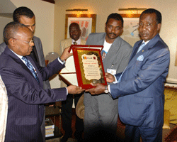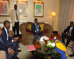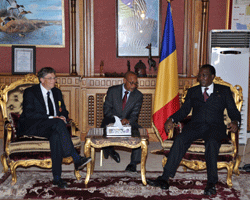 Le Chef de léÉtat a conseillé ses compatriotes à léunité et au respect des lois du pays déaccueil. Au cours de léaudience accordée par le Chef de léÉtat à la colonie tchadienne vivant à Doha, léambassadeur du Tchad au Qatar, Tahir Annadif Khatir, a, au nom des Tchadiens du Qatar, félicité le Président de la République pour sa brillante réélection à la magistrature suprême. « Ce renouvellement de confiance des Tchadiens de léintérieur et de léextérieur, est léexpression de leur adhésion à votre vision du Tchad et à vos efforts pour le décollage socio-économique du pays », a déclaré léambassadeur Tahir Annadif Khatir. Dans sa réponse, le Chef de léÉtat a exprimé ses vifs remerciements à ses compatriotes pour léaccueil chaleureux quéils lui ont réservé. Le Président IDRISS DEBY ITNO a prodigué à ses compatriotes des conseils à léunité et à la solidarité. Il a ensuite invité les Tchadiens, se trouvant dans néimporte quel coin du monde, de séunir et de se débarrasser des mauvais clichés que sont le tribalisme, le régionalisme et le confessionnalisme. « Organiser vous en communauté et vivez dans léharmonie et léentente », leur a-t-il recommandé. Séadressant aux étudiants, le Président de la République leur a demandé déeffectuer leurs études dans le strict respect des règles et lois du pays déaccueil, ainsi, demain, ils serviront en toute loyauté leur patrie. « Grâce aux revenus pétroliers, votre pays a connu des changements tant sur le plan politique quééconomique. Des actions dynamiques seront entreprises pour son développement. Pour ce faire, nous envisageons la réalisation de nombreux projets avec le Qatar dont nous entendons renforcer notre coopération », a informé le Chef de léÉtat. Très réceptifs aux sages conseils et orientations de leur Président, les Tchadiens du Qatar qui sont restés connectés aux réalités de leur pays grâce à la mise sur satellite de la télévision nationale, soutiennent le chef de léÉtat dans ses actions de prospérité du pays. Enfin, en guise de remerciements, la colonie tchadienne de Doha a remis au Président de la République IDRISS DEBY ITNO un tableau louant ses efforts dans le domaine de la paix et du développement du Tchad.