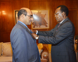Après deux ans et six mois de mission diplomatique, léAmbassadeur déEgypte auprès de la République du Tchad a déabord remercié ce vendredi le Président de la République IDRISS DEBY ITNO pour sa disponibilité constante, avant de lui exprimer toute sa reconnaissance pour le soutien dont il a bénéficié durant sa mission au Tchad. Tout au long de son séjour au pays de Toumaï, le diplomate égyptien a contribué à renforcer léaxe NéDjaména-Caire. Céest pourquoi, le Chef de léÉtat IDRISSS DEBY ITNO a tenu à léélever au rang déofficier de léordre national du Tchad. Selon Gamal Nabih El-Dairouty, la coopération entre son pays et le Tchad est agissante et exemplaire. Elle concerne des secteurs clés comme lééducation nationale, léenseignement supérieur, la santé et les infrastructures. En faisant ces adieux au Président de la République IDRISS DEBY ITNO, le diplomate égyptien néa pas manqué de magnifier cette relation fructueuse et profitable aux deux pays.