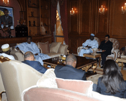Léentretien entre le Chef de léÉtat IDRISS DEBY ITNO et le représentant Spécial du Secrétaire général des Nations-unies au Soudan et Médiateur conjoint Union Africaine/Nations Unies pour le Darfour, Pr. Ibrahim Gambari intervient très exactement quatorze jours après la visite du Chef de léÉtat IDRISS DEBY ITNO à Al-Fasher au Soudan où il a assisté au lancement officiel des activités de léAutorité régionale du Darfour.Céest ce qui explique que léaudience a été essentiellement consacrée à la relance des activités de développement du Darfour suivant un plan déaction et ce conformément à léaccord de paix signé en juillet 2011 à Doha au Qatar. Tout en encourageant le représentant Spécial du Secrétaire général des Nations-unies au Soudan et médiateur conjoint UA/ONU dans sa démarche, le Président de la République IDRISS DEBY ITNO, a, une nouvelle fois, réitéré la volonté du gouvernement tchadien à accompagner les ex-frères ennemis soudanais à séattaquer au seul combat qui vaille, celui du développement de la région du Darfour. Le Président de la République IDRISS DEBY ITNO séest félicité enfin de la démarche du nigérian, Pr. Ibrahim Gambari, visant à mettre très rapidement sur les rails de la modernité la région du Darfour après la paix retrouvée.
