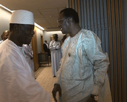 La crise malienne et la coopération bilatérale entre le Tchad et la Côte déIvoire sont les principaux points abordés par le Président de la République IDRISS DEBY ITNO et son homologue Alassane Ouattara. « Je suis venu recueillir des avis et conseils sur ces dossiers Maliens », a déclaré le Président ivoirien à sa sortie déaudience. En sa qualité de Président en exercice de la Communauté économique des États de léAfrique de léOuest (CEDEAO), Alassane Ouattara, a saisi le Conseil de paix et de sécurité de léONU pour léadoption déune résolution visant une intervention militaire au Mali. Outre la crise malienne, les deux hommes déÉtat ont également abordé la question du renforcement des relations de coopération entre NéDjaména et Abidjan.
